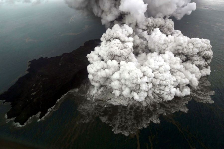 Le 23 décembre, des données satellitaires et des images d’hélicoptères ont confirmé que le secteur sud-ouest du volcan s’était effondré, ce qui avait déclenché le tsunami, et que la cheminée volcanique principal était en train de sortir sous l’eau, produisant une activité de type Surtseyan. (les volcans au contact de l’eau produisent de plus forte explosion)