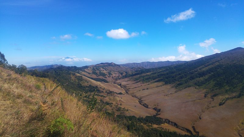 Une grosse partie de la randonnée se fait dans la foret. Lorsque la végétation devient clairsemée, on se rend compte que l’on marche au bord de la falaise qui descend dans la caldeira. En continuant sur ce chemin sur plusieurs kilomètres. Vous vous retrouverez sur le sommet appelé le B29. C’est aussi un super point de vu sur le Bromo et qui est très peu fréquenté. De la vous descendrez dans la caldeira à rebord de falaise sur un chemin très escarpé (ne surtout pas avoir le vertige). Ce chemin devra vous prendre 4h peut être plus. Il faudra qu’une Jeep ou une motocross vous récupère ensuite au pied de la falaise pour aller ensuite au bromo et au village Cemero Lawang.
